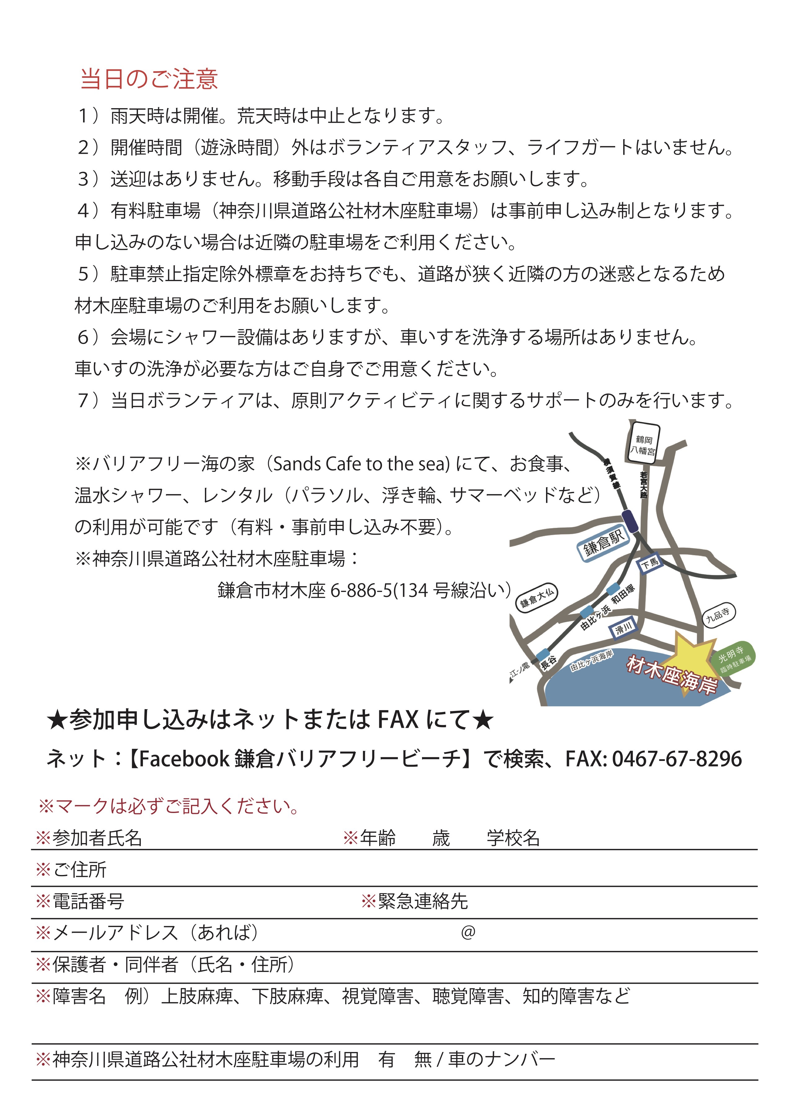 ★参加希望の障害者の方は、下記参加希望フォームより申し込みいただくかFAX: 0467-67-8296よりお申し込み下さい。締切6月30日