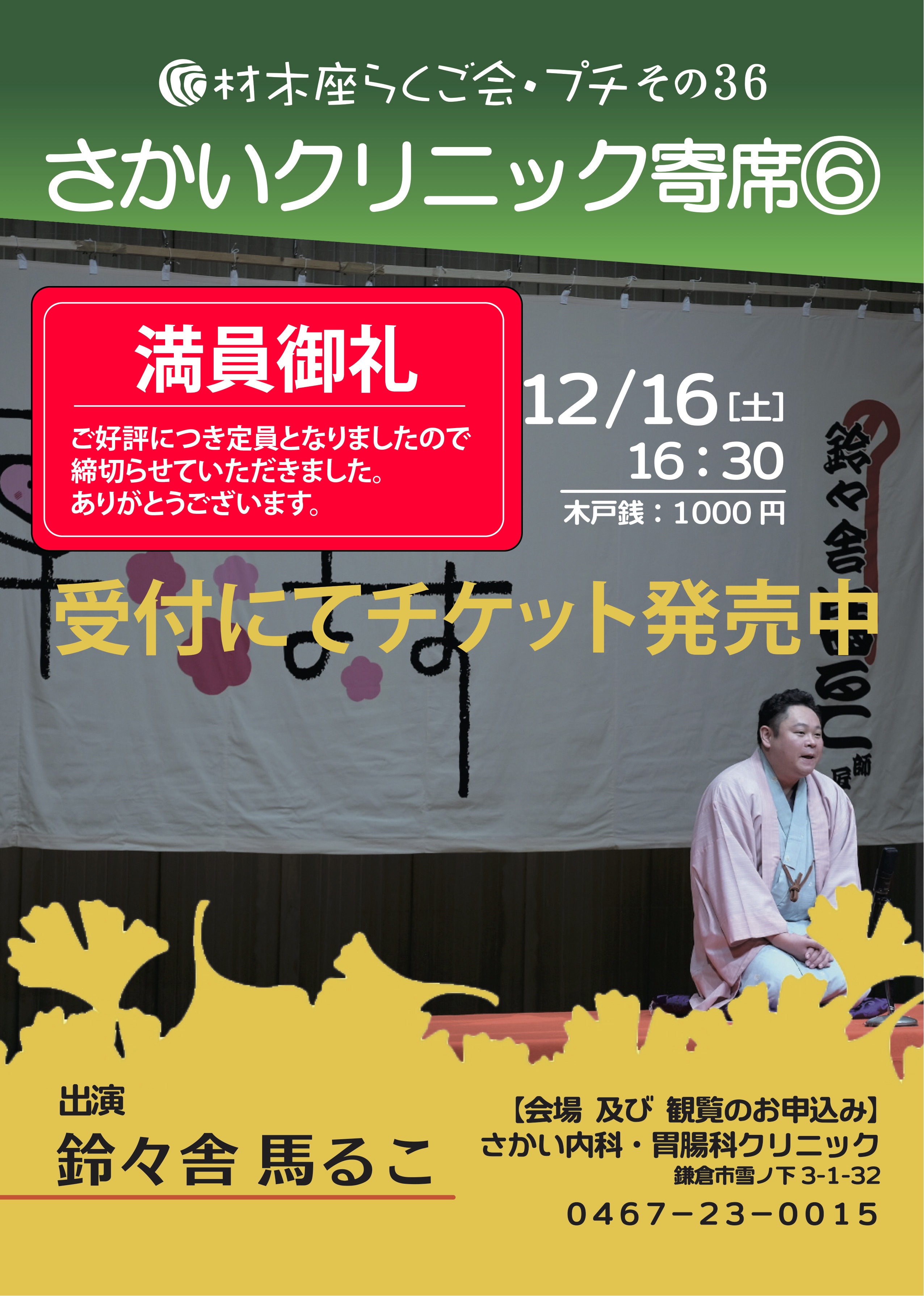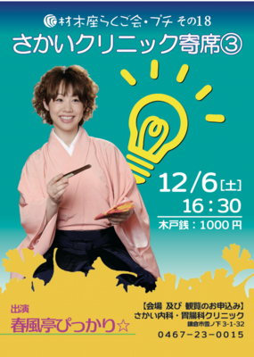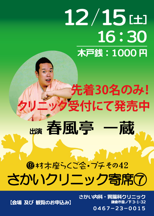 次回のクリニック寄席をよろしくお願い致します。