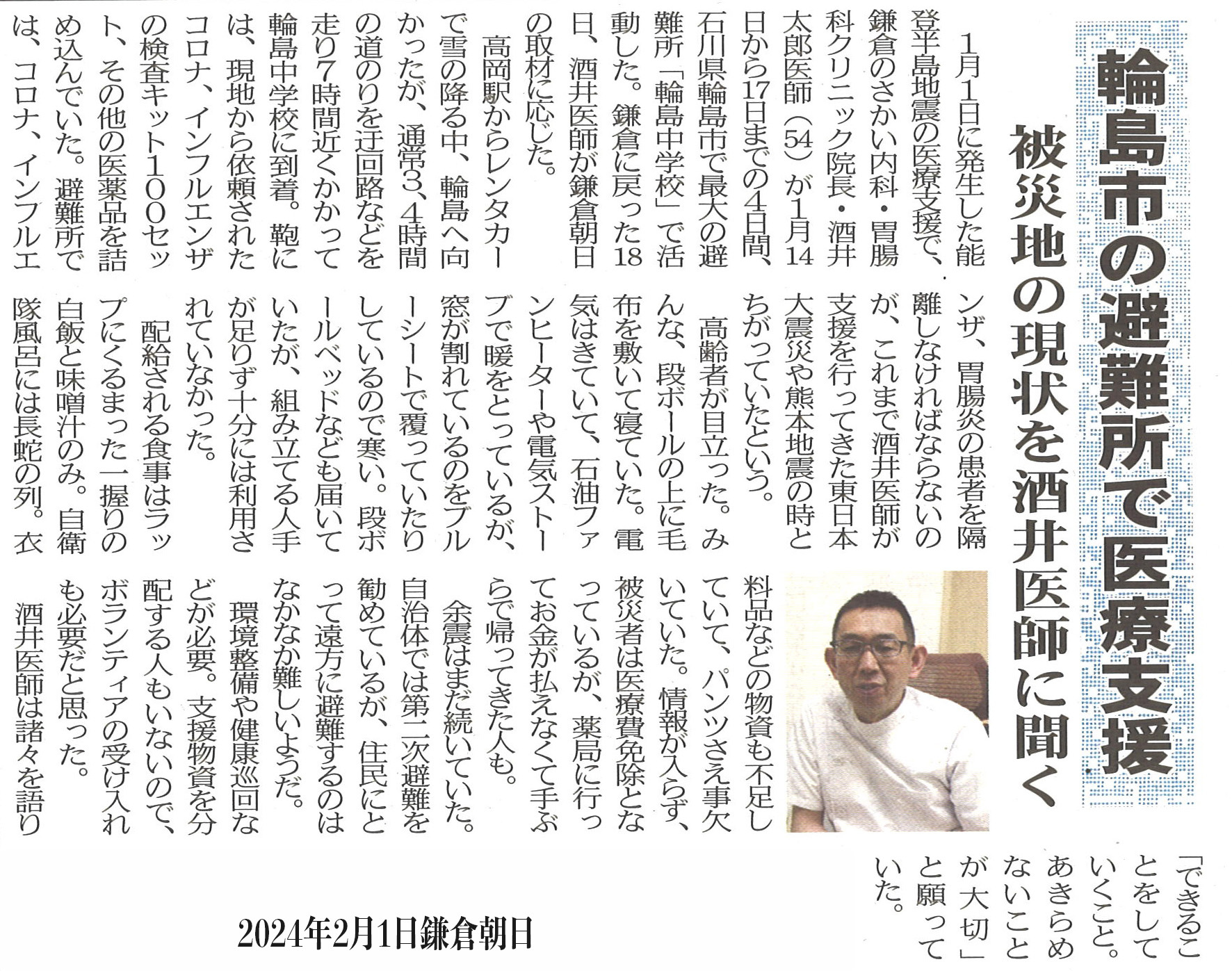 「被災地支援を続ける開業医 酒井太郎さん(46歳)